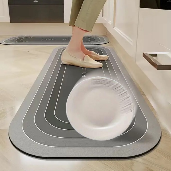 Covorașul antiderapant se prinde ferm de podea, prevenind alunecările și oferind o bază sigură și stabilă în timpul gătitului.
